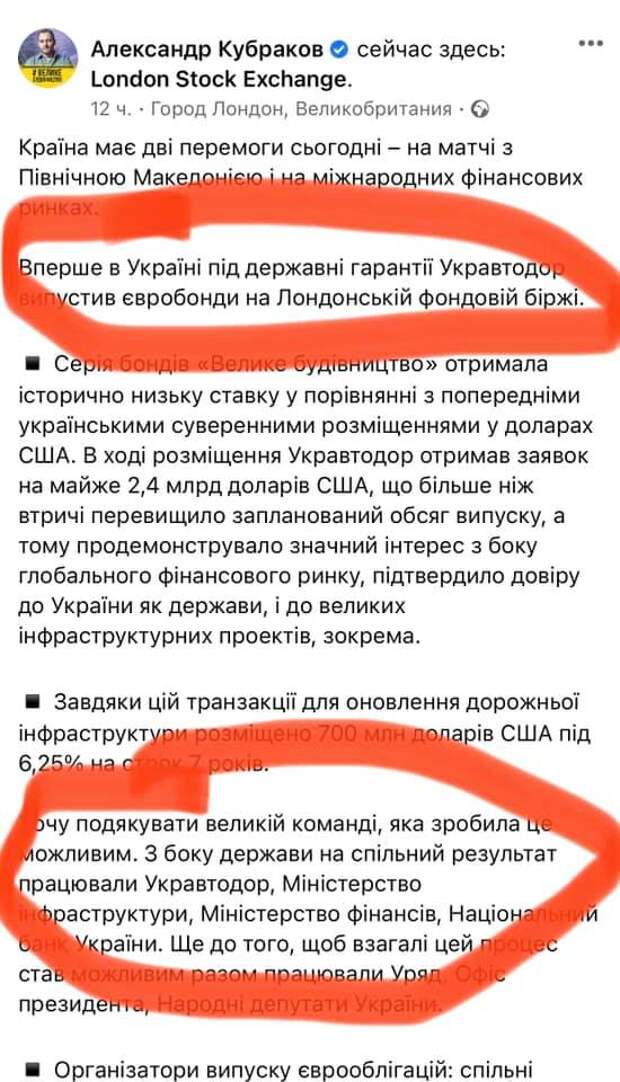 «Укравтодор» впервые под государственные гарантии разместил на Лондонской фондовой бирже евробонды на 700 млн долларов США. Однако такой шаг понравился не всем. Так, основатель проекта Politicus и секретарь НСЖУ Сергей Лямец жестко раскритиковал это решение и привел свои аргументы. А вот экс-замдиректора «Укроборонпрома» Мустафа Найем обрадовался такой «исторической отметки для получения средств».