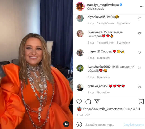 Платье выгодно подчеркнуло бюст звезды, сделав на нем акцент. Выглядела артистка просто бесподобно. Она покрутилась перед камерой, впечатлив поклонников. «Сколько на твоих часах, когда смотришь этот видеоролик? У меня 18:57», - пошутила над поклонниками певица. В комментариях ей оставили массу приятных слов и комплиментов. «Полный трындец. Видимо что-то цыганское в роду!», «Красотка», «Какое роскошное платье», «Звезда», «Богиня», «Как всегда –шикарна», «Как всегда красивая», «Вы умеете удивлять», - пишут пользователи сети. Напомним, что Наталье Могилевской пожаловались на экс-мужа Билык: "Подсидел меня!". Ранее Politeka писала, что Могилевская показала, с кем общается на съемках "Співають всі": "Кто спрятался?". Также Politeka сообщала, что Могилевская опозорилась из-за нового видео с Ольгой Цибульской: "Дожить нужно..".