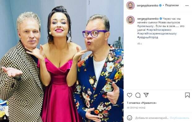 Артист активно ведет страничку в Инстаграм, делясь там самым интересным с фанатами. На новом фото, которое Сергей опубликовал в социальной сети, актер был вместе со своим другом Евгением Никишиным, который также выступает в команде КВН "Уездный город". Между актерами расположилась телеведущая и актриса "Дизель шоу" Марина Грищук. Сергей с Евгением надели яркие костюмы, а Марина решила примерить роскошное платье с открытыми плечами. "Через час мы начнем съемки Новых выпусков Дизель шоу. Если вы в зале…… это удача", - написал Сергей под фотографией. Фанаты не успели написать комментарии и поставили один лайк под публикацией. Напомним, актеры "Дизель шоу" Писаренко и Никишин удивили отношениями вне выступлений на сцене Также Politeka сообщала, что актеры "Дизель шоу" пошли друг на друга со сжатыми руками, всплыли подробности А еще Politeka писала, что актеры "Дизель шоу" Писаренко попал под шквал критики из-за кадров с сыном-подростком
