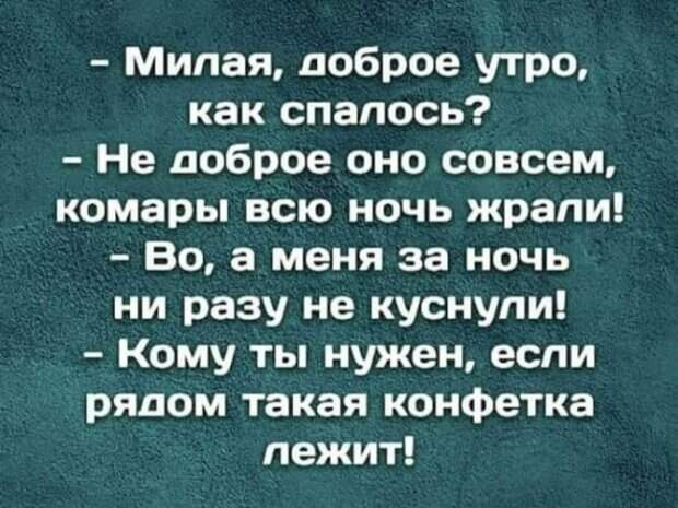 Когда почувствуешь себя одиноко, просто вспомни, что внутри тебя живут сотни видов бактерий, не выполняющие никаких функций. Ты просто им нравишься 13: - Я самое зловещее число! 666: - Нет, я! 2020: - Привет... *** Когда у вас есть ребёнок, это похоже, как если бы у вас был маленький друг вечно "на мели", который считает вас богатым.
