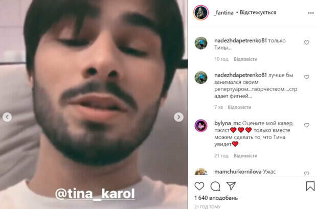 Участник 11-го сезона шоу "Голос країни" Никита Ломакин, который известен своим участием в «Х-факторе» и романом с певицей Мишель Андраде, отличился пародиями на своего наставника Как передает Politeka.net, на одной из фан-страниц в Инстаграм появилось видео сторис Никиты, в которых он обыгрывал песню Тины Кароль «Скандал».