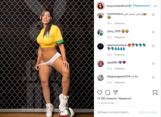 Теперь модель может с гордостью похвастаться подтянутыми формами и жарким видом. Кортес не любит скрывать при этом достоинства, поэтому примеряет на съемках иногда лишь белье или спортивные костюмы, демонстрирующие бюст. В этот раз в майке с расцветкой любимого футбольного клуба, белом белье и аккуратных кроссовках с мячом модель показала новый бунтарский образ. Вот что пишут пользователи: «Милая дамочка; тут сплошная роскошь