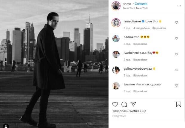 На черно-белом снимке парень запечатлен на прогулке в Нью-Йорке на фоне небоскребов и людей. Как видно, на прогулку Толик вышел в черном наряде – узких брюках и пальто средней длины, которое не застегнул. Он снят сбоку и как будто на ходу, но повернул голову и смотрит прямо в камеру острым мрачным взглядом. В подписи к фотографии Евдокименко загадочно написал: "Люблю это". Фолловеры принялись обсуждать снимок, некоторые спрашивают, что с ним происходит. "Вау❤️
