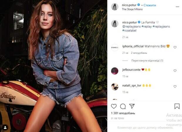 Модель Николь Потуральски, которой приписывают роман с актером Брэдом Питтом, похвасталась красотой в джинсовом наряде Об этом сообщает Politeka со ссылкой на Instagram знаменитости. «Семья», - коротко подписан снимок. Уточним, что на опубликованном снимке Потуральски облокотилась об байк, эффектно расставив при этом ноги в джинсовых мини-шортах.