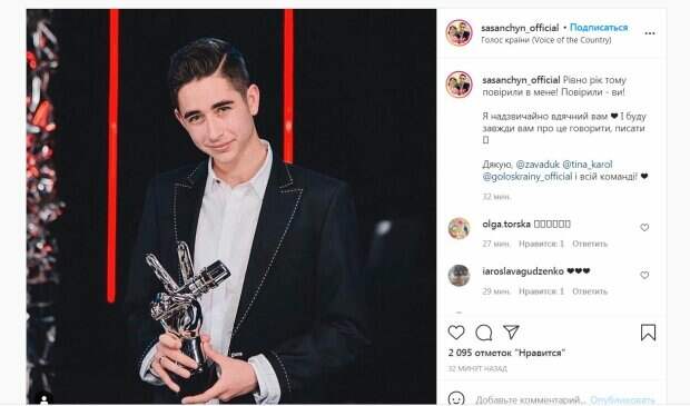 19-летний победитель вокальных шоу "Голос. Діти" и "Голос країни-10" Роман Сасанчин обратился к Тине Кароль  Артист вспомнил день, когда его назвали победителем,  пишет Politeka.net. Отметим, в прошлом году Сасанчин завоевал победу, находясь в команде тренера Тины Кароль.  К слову, популярная артистка пробыла в тренерском кресле шоу рекордное количество сезонов — восемь.