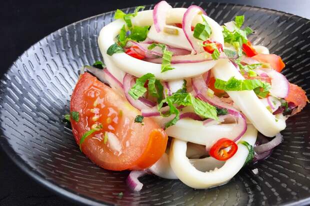 Предлагаю вам попробовать вкусный салат из кальмаров и куриной грудки. Он очень оригинальный и хорошо подходит для праздничного стола. Продукты: 300 гр кальмаров, 1 куриная грудка, 500 гр шампиньонов, 1 плавленый сырок, 3 стол ложки сметаны, 200 гр грецких орехов, 2 луковицы, 3 зубка чеснока, растительное масло, соль по вкусу.