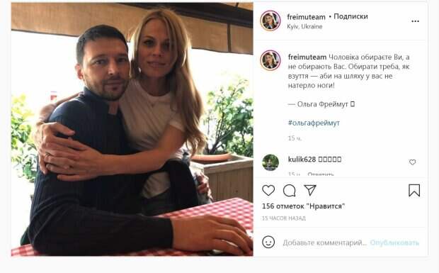 Позже супруги рассказали, что начали строить отношения с апреля 2015 года, после визита Фреймут на могилу Габриэль Шанель в Швейцарии. Известно, что свою старшую дочь, Злату Митчелл, телеведущая родила от иностранца, когда стажировалась в Лондоне. Поклонники Ольги заводят страницы в сети, в которых делятся мудростью кумира. "Мужчину выбираете Вы, а не выбирают Вас. Выбирать надо, как обувь - чтобы на пути у вас не натерло ноги! Ольга Фреймут