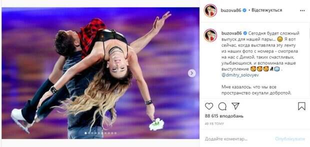 Российская певица Ольга Бузова продолжает покорять лед Артистка в паре с олимпийским чемпионом в танцах на льду Дмитрием Соловьевым являются одними из самых ярких участников шоу «Ледниковый период», и на своей странице в Инстаграм звезда то и дело публикует рассказы о том, как проходит для них каждое новое выступление, делится переживаниями с читателями, передает Politeka.
