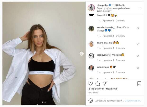 На последнем снимке Николь улыбалась, взявшись рукой за голову. Об этом пишет Politeka.net со ссылкой на страничку знаменитости. Фанаты поставили более 2 тысяч лайков и написали комментарии: "Мне очень нравится", "Просто так красиво", "Как всегда красиво", "Вы идеальны", "Холла, лесная фея", "Вы всегда красивы и обаятельны. Вы как принцесса. Я был очарован твоей красотой", "Университетская жизнь - это не весело. Но я получаю от тебя энергию", "Ты такая потрясающая", "замечательное начало выходных", "С праздником выходный, очень соблазнительная девушка". Мы писали, что немецкая модель Николь Потуральски показала себя в начале рабочей недели. На фото Николь позировала в штанах, без обуви и в странном топе, который частично закрыл частично тело, но можно замети. Напомним, экс-любовница Брэда Питта с глубоким декольте показала свое великолепие в лучах солнца А еще Politeka писала, что экс-любовница Брэда Питта в коже показала молодую красоту со всех сторон Также Politeka писала, что экс-любовница Брэда Питта поиграла с фантазиями мужчин, засветив "шарики" без белья