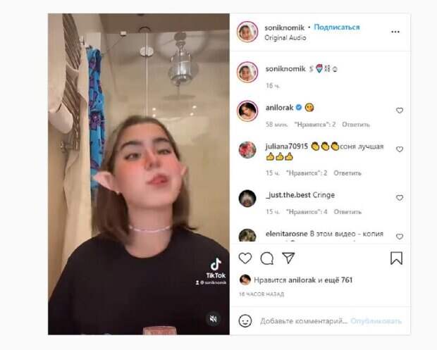 10-летняя малышка уже активно ведет социальные сети, где делится кадрами из личной жизни. На новом видео Соня была в футболке, сидя в ванной перед камерой. Девочка использовала специальные накладны уши, чтобы сделать их эльфийскими. Девочка баловалась под музыку. Фанаты посмотрели ролик сотни раз и написали комментарии: "Соня лучшая", "В этом видео - копия мамы! Очень артистична!", "Какая хорошенькая", "Просто класс", "Не кривляйся как обезьяна", "Бедная мартыха, ни папки, ни мамки". Напомним, юная дочь Ани Лорак повеселилась на празднике у подружки, поразив видом А еще Politeka сообщала, что дочь Ани Лорак озадачила выбором нарядов перед камерой, пока матери нет дома Также Politeka писала, что 10-летняя дочь Ани Лорак огорошила поведением на новом видео