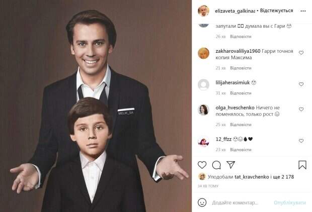 Некоторые даже сперва не поняли, что это фото маленького Максима, а не Гарри. «Я подумала, что это с Гарри», «Вот на кого похож Гарри, на папочку», «Гарри копия папы», «Максим, запутали! думала, вы с Гари», «Гарри точная копия Максима», «Ничего не поменялось, только рост», «Даже взгляд один как у Гарри. Что значит гены», «Маленький - копия Гарри», «Отфотошопили что сейчас, что в детстве. Все давно знают, что Гарри очень похож. А это уже перегиб», «Сын очень похож на отца», «Прикольно сделано», - пишут в коментариях. Как известно, Гарри и Лиза родились в 2013 году. Близнецы появились на свет искусственным путем из замороженной яйцеклетки Аллы Борисовны. По словам Пугачевой, свой биоматериал она заморозила в 52 года. Детей для звездной пары выносила суррогатная мать. На момент рождения близнецов Алле Борисовне исполнилось 64 года, а Максиму — 36 лет. В 2020 году дети пошли в первый класс. Напомним, дети Пугачевой и Галкина не смогли скрыть эмоций, грустное фото облетело Сеть: «Крепитесь, малыши». Как сообщала Politeka, соседи взъелись на Аллу Пугачеву и Галкина, детали конфликта: «Чего ты и нам продукты не носишь?» Также Politeka писала, что муж Пугачевой Галкин поразил "превращением" в супергероя, кадры покорили сеть: "Максмэн"