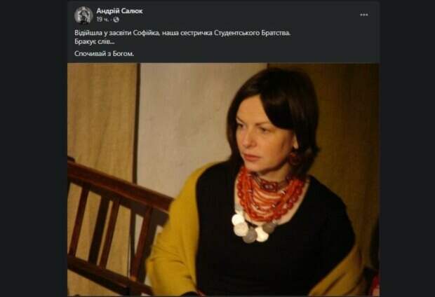 Оборвалась жизнь украинской певицы и волонтера Как передает Politeka.net, трагическую новость на своей страничке в Facebook, "Отошла в мир иной Софийка, наша сестренка Студенческого Братства. Не хватает слов. Покойся с Богом", - говорится в сообщении. Софии Палюх не стало 9 июня. Она занималась волонтерством на востоке страны.