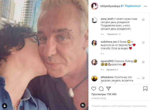 Так, счастливая Лолита огорошила известием - сам рокер, наверно, тоже удивился. "Я встретила своего брата... Я твоя сестра! Не думайте ничего плохого!", - заявила Милявская и полезла к Тиллю целоваться. Звезда чмокнула музыканта в щеку - тот аж заулыбался. "4 января День Рождения у замечательного Человека, Поэта, Музыканта, Лидера Рамштайн Тилля Линдеманна! Я Поздравляю от всего сердца ❤️ Но отдельная Любовь к Твоей Маме