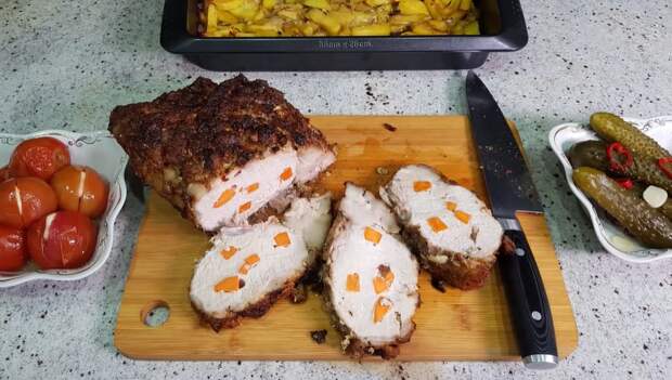 Представляю рецепт очень вкусного и сочного мяса со специями, который по достоинству оценит любой мужчина. Порадуйте своих гостей и близких классным мясным блюдом, которое запомнится им надолго. Оно прекрасно подойдет и на праздничный, если его презентабельно украсить, и на повседневный стол. Ингредиенты: Свиная корейка – 1,5 кг; Морковь – 1 шт.