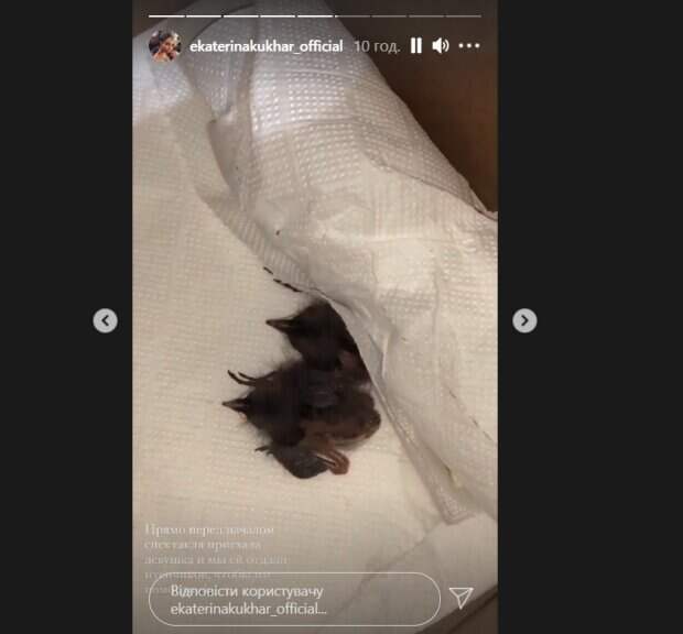 А на недавних кадрах звезда показала, как перед началом спектакля отдали маленьких птенчиков в надежные руки. "Прошлой весной спасали щегла. Наверное, какая-то особенная карма. За нашими воробушками приехали, оказалось, что это воробушки", - сказала на видео звезда. "Самое чудесное, что все ребята так сплотились и каждый пытался помочь: поехали покупать пищу, бегали по очереди кормить", - написала Кухар. Недавно Екатерина показала, что ее муж с другом, коллегой Борисом Яструбом, подобрали "малышей". На кадрах двое мужчин кормили крошечных птенцов молоком. "Подобрали новорожденных птенчиков и взялись их спасать", - подписала кадры балерина. Позже звезда записала еще одно видео, где двое артистов также ухаживали за птенцами. "Папа Боря и мама Саша", - произнесла Кухар. "Европейская семья: папа Боря и мама Саша", - смеясь, кто-то произнес за кадром. А следующие кадры подписаны так: "Каждый год я занимаюсь спасением птиц... Прошлой весной спасали щегла. Наверно, какая-то особенная карма". Напомним, Кухар из "Танців з зірками" укатила на курорт, впечатлив развлечениями не по погоде: фото красотки. Как сообщала Politeka, Кухар из "Танців з зірками" впечатлила Сумскую, показав, от кого унаследовала свою внешность: "Катюша, как. ..". Также Politeka писала, Муж Кухар из "Танців з зірками" поразил обращением к другой женщине, в сети ахнули: "Какие слова...".