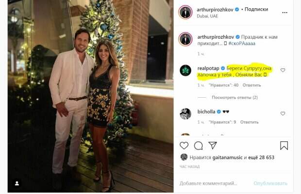 Российский певец и шоумен Артур Пирожков (Александр Ревва) поднял настроение снимком с красоткой женой Артист вместе с супругой, Анжеликой, проводит время в Дубае, сообщает Politeka.net. Пара делится своим позитивным настроем с поклонниками. Ревва приобнял красотку-жену, позируя возле наряженной елочки.
