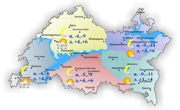 В воскресенье, 12 марта, в Татарстане ожидается облачная с прояснениями погода. Ночью без существенных осадков, а утром и днем небольшой снег и дождь. Ветер юго-восточный и южный местами с порывами до 15—20 м/с, локально до 22 м/с. Такой прогноз дали в Гидрометцентре республики. Днем температура воздуха составит от +1 до +6 градусов.