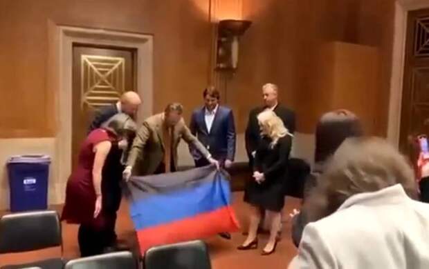 Украинские активисты в американском Конгрессе поглумились над флагом ДНР, вытерев об него ноги. Соответствующее видео уже появилось в социальных сетях.