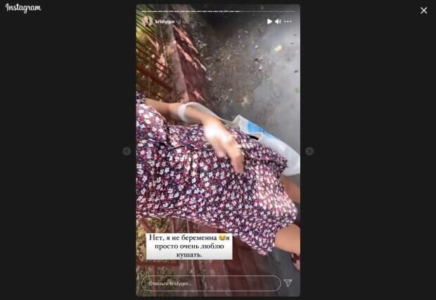 Сейчас девушка также активно занимается блогерством, на ее страницу в Инстаграм подписаны 105 тысяч пользователей сети, с которыми она делится разными мыслями, рассказывает о проведенных днях и другое. В этот раз красотка решила в сторис показать свой "беременный" живот. Кристина позировала в красивом мини-платье с декольте, и погладила себя рукой. "Ух! Мой "беременный" живот... от пончиков. В общем, я еле иду. Надо как-то собраться, потому что сейчас у меня будут танцульки! Это всегда меня радует, но я очень сильно наелась", - рассказала жена телеведущего, неожиданно пошутив о своей беременности. Позже блогерша показала, как танцует страстный танец со своими партнером в студии. Горняк надела черный топик, и обтягивающую юбочку с разрезом, которая поднималась от каждого движения и оголяла ее ножки. Напомним, жена Остапчука оставила мужа и поразила новыми кадрами А еще Politeka писала, что жена Остапчука удивила нежным фото, муж в восторге Также Politeka сообщала, что жена Остапчука уехала отдыхать без мужа и засветилась в объятиях молодого мужчины