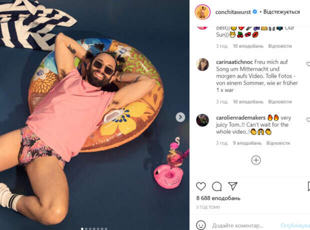 В этот раз он показал, в чем будет проводить лето. Артист позировал в разноцветных плавках, а также примерял яркий женский купальник. Не обошлось и без аксессуаров, которые так любит артист. «Лето начинается в полночь», - подписал фото Томас. В комментариях артисту оставили массу положительных отзывов. Не обошлось и без критики. «Это так противно», «Вы выглядите совершенно расслабленно, весело и красиво. Спасибо, что поделились этими замечательными фотографиями, красота», «Это будет жаркое лето благодаря вам», «Счастливый! Лето началось», «Захотелось пойти на пляж и море», «Ужасно», - пишут пользователи сети. Ранее мы писали, что Кончита Вурст вышла в прямой эфир с популярной травести-дивой Барби. Обе артистки были при полном параде. Кончита сменила парик, превратившись в рыжую бестию, а Барби сделала яркий макияж и распушила волосы. Напомним, что звезда "Евровидения" Кончита Вурст появилась в компании известного красавчика: "Идеальная пара". Как сообщала Politeka, звезда «Евровидения» Кончита Вурст удивила видом в повседневной жизни: кадры перевоплощения. Также Politeka писала, что звезда "Евровидения" Кончита Вурст покорила образом для летней жары: "Шорты короче самых коротких. ..".