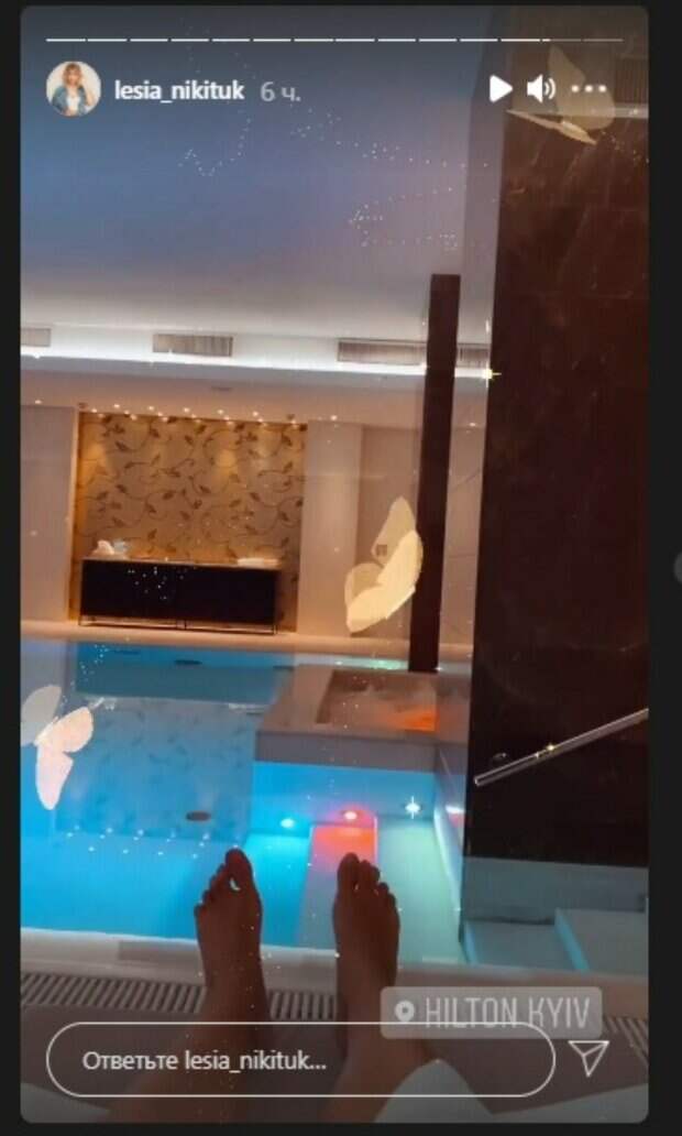 Телеведущая Леся Никитюк раскрылась перед публикой с новой стороны Как передает Politeka.net, 33-летняя звезда опубликовала свежие "сториз" в Инстаграм, на которых, показала, чем занимается в отеле Hilton Kyiv. Так, распаренная и расслабленная Никитюк позировала возле бассейна, растянувшись на шезлонге.