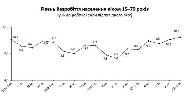Госстат выложил новые данные по безработице в Украине за первый квартал 2021 года. Вчера мы обсуждали на что, согласно официальной статистике, украинцы тратят деньги. Сегодня тоже есть о чем рассказать. В сети опубликовали график безработицы населения от 15 до 70 лет за последние четыре года, согласно которому уровень заметно подскочил.