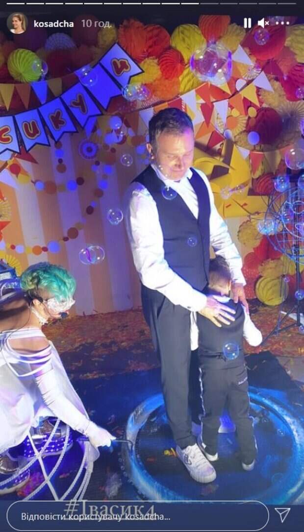 Все семейство выбрало одинаковый лук черные брюки, белые рубашки и жилетка также черного цвета. Вышло очень стильно. В кадр попали Юрий с сыном, которых "проглотил" мыльный пузырь, мама с папой под дождем из мыльных пузырей и самое главное представление, как Горбунов стал укротителем огня. Смельчаку Юрию поставили на руку специальную смесь, а потом подожгли. Счастливый отец смог быстренько задуть вспыхнувший огонь, не успев обжечь руку. "Смелый папа", - подписала видео Катя Осадчая. Известно, что руки для таких "фокусов" обрабатывают специальным раствором, который в принципе не может допустить ожог. На видео слышно, как восторгаются участники феерии и радостные возгласы взрослых и малышей. Юрий также показал в своем сторис несколько кадров с дня рождения сына. В камеру телеведущего попал сервированный стол, а также праздничные баннеры и "кусочек" видео праздничного шоу. Напомним, что счастливые Горбунов и Осадчая похвастались своей главной гордостью, ведущий не сдержал чувств: "Вроде только вчера...". Также на сайте Politeka мы писали, что Катя Осадчая перевоплотилась в Княгиню Екатерину, Джамале тоже захотелось. Ранее Politeka рассказывала, что Осадчая в лаконичном наряде поразила отменным чувством стиля.