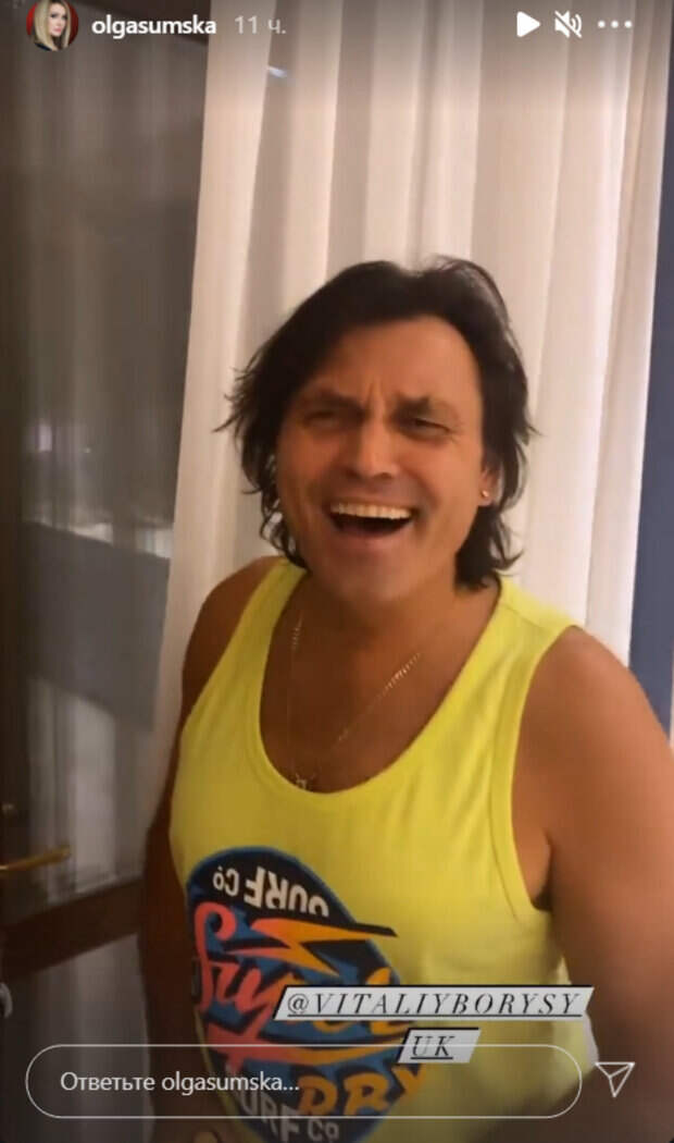 Но на этапе нокаутов певца выгнали, Винник не освободил для него места и не пропустил в прямые эфиры. Ольга и Виталий активно ведут социальные сети и рассказывают о происходящем в жизни. На этот раз Ольга показала в Инстаграм-сториз своего мужа - Виталия Борисюка. Певец в яркой желтой майке танцует на кухне и поет песню "Твои глаза как свет небес". Потом Виталий берет со стола бокал вина, и танцует уже с ним. Позже к нему присоединяется жена Ольга Сумская, и они поют вместе. Ранее сообщалось, муж Сумской Виталий Борисюк, выйдя на сцену, показал, кого потерял "Голос країни": "Заслуженный..." Также, Сумская выдала правду об участии мужа Борисюка на шоу "Голос країни": "Позвонить Виннику..." Politeka рассказывала, 57-летний муж Сумской Борисюк оправдался за приход в «Голос країни»: "Люди плакали от счастья..."