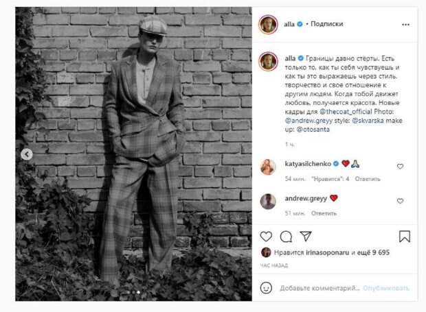 На новых фото красотка была в разных необычных образах. Девушка примеряла несколько платье и клетчатый костюм. "Границы давно стёрты. Есть только то, как ты себя чувствуешь и как ты это выражаешь через стиль, творчество и свое отношение к другим людям. Когда тобой движет любовь, получается красота", - написала Алла Костромичева. Фанаты поставили почти 10 тысяч лайков и написали комментарии: "Вау", "Шикарно", "Образ такой интересный", "Крутяк", "Кайфово написано", "Как атмосферно - это стильно, красиво и со вкусом", "Хорошо в кепке". Напомним, Костромичева из "Супер топ-модель по-украински" напугала незнакомую женщину А еще Politeka писала, что Костромичева из "Супер топ-модель по-украински" засветила лишнее в льняном платье с глубокими вырезами Также Politeka сообщала, что Костромичева из "Супер топ-модель по-украински" в летящем платье показала свое главное достоинство