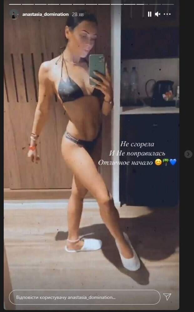 Об этом пишет Politeka.net со ссылкой на страничку знаменитости. "Не сгорела. И не поправилась. Отличное начало", - написала звезда под фото. На кадре, который девушка выбросила в сторис до этого, красотка лежала на пляже и загорала. Анастасия только дополнила образ шляпкой, а в руках держала книжку. Как известно, Кумейко только уехала отдыхать в теплые страны. "Целый день", - подписала кадры Анастасия в сторис Инстаграм. Фанаты не смогли оставить комментарии под фотографиями, так как у них не было такой возможности. Мы писали, что популярная украинская певица Анастасия Кумейко покорила упругими формами в одном боди. «Хотела быть секси кошечкой…но тут запуталась ножка в штанине», - коротко говорится в сообщении. Уточним, что на опубликованном ролике Кумейко предстает в боди и штанах, постепенно избавляясь от последних. После этого знаменитость покоряет соблазнительным танцем, демонстрируя свои лучшие места. Напомним, экс-Nikita в шелках и без белья заставила наслаждаться роскошным телом А еще Politeka писала, что бесстыжая экс-Nikita избавилась от одежды, показав соблазнительные изгибы Также Politeka сообщала, что экс-Nikita показала вершину своего наслаждения, сбросив одежду