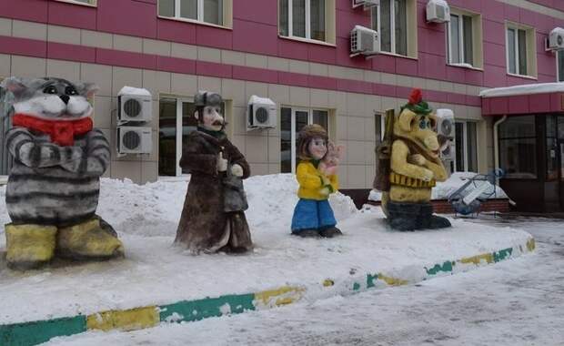 В Казани на улице Четаева, 17 появились снежные фигуры персонажей советского мультфильма «Простоквашино» и тигра. Об этом сообщает пресс-служба мэрии города. Их слепили скульпторы из Зеленодольска Виктор и Елена Макаровы. Для работы было использовано более 20 кубов снега. Герои этого мультфильма были выбраны по желанию жителей близлежащих домов.
