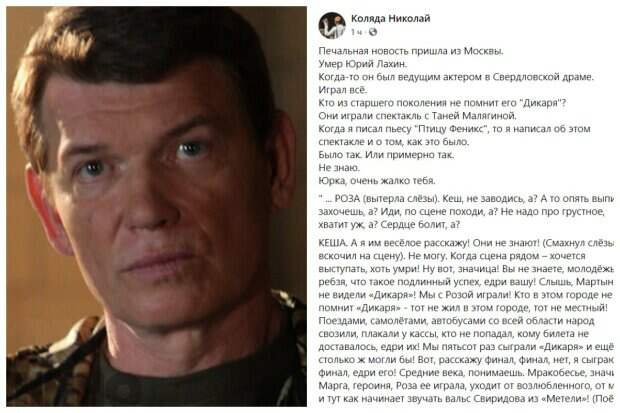 Когда-то он был ведущим актером в Свердловской драме. Играл все», — написал Коляда. В начале декабря Лахин попал в больницу. Врачи сделали тест на коронавирус — он оказался положительным. С тех пор его состояние не улучшалось, и в конце декабря медики перевели его на ИВЛ. Он имел украинские корни, ведь актер родился в Запорожье 23 июля 1952 года. В раннем детстве вместе с семьей переехал на Урал — там же вырос и закончил школу. После поступил в Свердловское театральное училище, выпустился из него ы 1978 году. Наибольшую известность получил благодаря съемкам в сериалах «Ликвидация», «Молодежка», «Вечный зов» и «Громовы». Под публикацией драматурга пользователи сети выражают свое сочувствие и поддержку близким Лахина: «Юра... прекрасный был - не только актер, а человек, одновременно сильный и..нежный что ли», «Юра... Царствие небесное...», «Ох, совсем недавно пересматривала "Ликвидацию", он там очень достойно играл. Жаль, совсем не возраст». Напомним, оборвалась жизнь выдающегося украинца, страна потрясена. Как сообщала Politeka, остановилось сердце именитого украинского комика. Также Politeka писала, что остановилось сердце выдающегося украинца, который месяц боролся с вирусом.