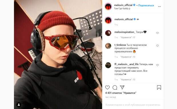 Так, Melovin сделал селфи в звукозаписывающей студии на фоне оборудования. Лицо певца было почти полностью скрыто за огромными стильными очками. На голове артиста красовалась красная шапка, поверх которой он надел наушники, необходимые при записи звука. Таким образом, артист слегка приоткрыл для поклонников завесу, показав свой творческий процесс. Фанаты не могли не оценить такой шаг. «Теперь нам предстоит пережить предстоящий нам soon. Все готовы?», «Ты в творческом процессе особенно привлекателен», «Какие мощные очки», «твори, создавай, вдохновляй», «Больше чем этот антураж тебе идет только сцена», «Кайф действительно чувствуется через фото», «То чувство, когда помимо главного элемента фото рассмотрел ещё и отражение в очках», «в ожидании чего-то прекрасного!», «Ты на Леди Гагу похож», «Работа, творчество, что может быть прекрасней», - пишут люди. Напомним, фаворит Данилко MELOVIN показал, как выглядит после новой смены имиджа: «О, эти глаза и кудри». Как сообщала Politeka, фаворит Данилко MELOVIN показал, что с собой сделал: "Уже шестой год подряд..." . Также Politeka писала, что фаворит Данилко MELOVIN с новой внешностью изумил сходством с мамой: "Солнышки".