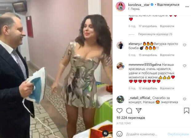 «Ура!!! Свершилось! Я и моя команда после долгого перерыва возобновляем концертную деятельность! Как же мы соскучились! И для меня очень символично что мы начинаем именно с ним, Боречка @borisizh супер профи своего дела один из лучших промоутеров нашей страны! Любимый зритель мы едем к вам!», - заявила счастливая Королева. В комментариях красотке оставили массу приятных слов. Поклонники обрадовались, что вновь смогут посетить концерт своего кумира. «Наташа, какая вы красивая, милая и очень очень стройная», «Как здорово! Наконец-то, страна возвращается к жизни», «Фигурка просто бомба», «Наташа красавица, очень нравится, удачи и побольше радостных моментов в жизни», «Супер! Наташка в супер платье! Впрочем, как всегда! Обожаю эту красотку давно», «Не пугай людей», - пишут пользователи сети. Напомним, что Наташа Королева оставила единственного сына, который готовится к свадьбе, без своего жилья: "Гнездо на чердаке...". Как сообщала Politeka, подвыпившие Наташа Королева и Тарзан прилюдно продемонстрировали свою страсть: "Пара огонь". Также Politeka писала, что изменщик Тарзан сбежал от Наташи Королевой в Крым, появилось видео: "Вечно можно смотреть...".