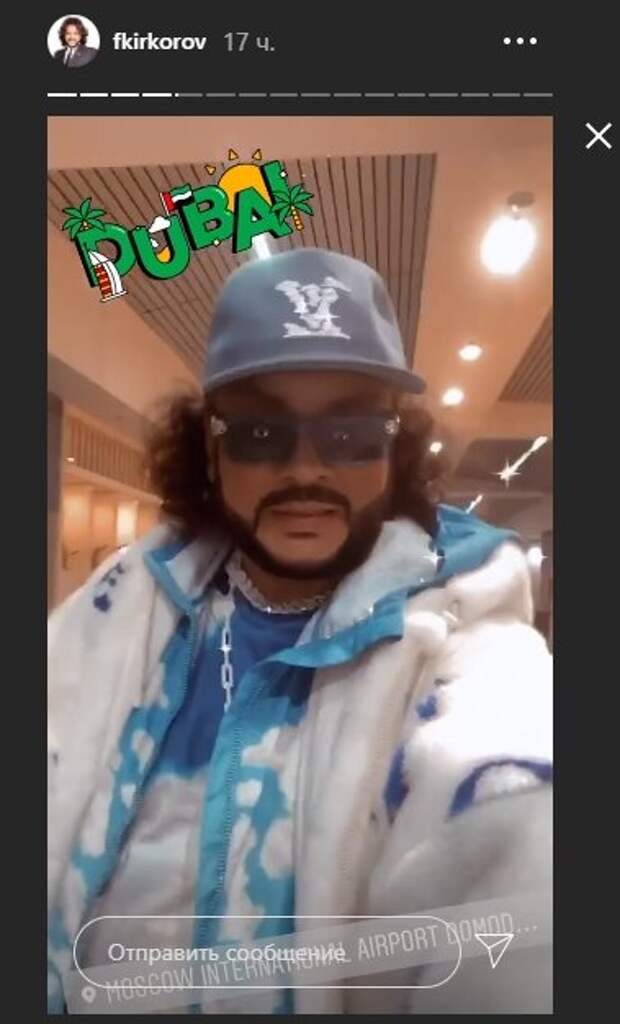 Счастливый Филипп Киркоров увез детей на курорт, пока во всем мире бушует пандемия Российский певец выложил на своей странице в "Инстаграм" видео, которые записал в аэропорту, передает Politeka.net. Для авиаперелета поп-король выбрал бело-синий образ, стилизованный под небо с облаками, он состоит из куртки, пуловера, рваных штанов, бейсболки и кроссовок.