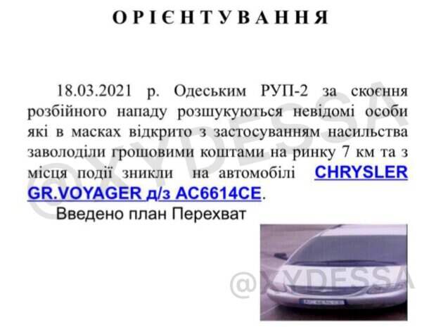 На одесском рынке «7 километр» люди в масках похитили крупную сумму денег у бизнесмена, введен план «Перехват» Разбойное нападение произошло средь бела дня на автостоянке промрынка. Подробнее об этом сообщает издание «Думская». Примерно в 12:00, когда мужчина находился в салоне своего Mercedes Vito, к нему подбежали четыре человека в масках.