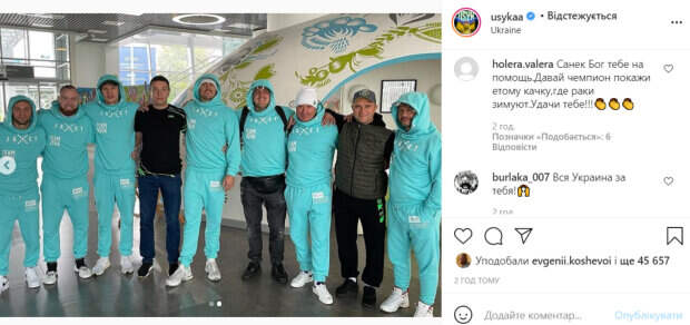 Некоторые обратили внимание, что на фото нет еще одного чемпиона, друга Усика Анатолия Ломаченко. «С Богом, удачи тебе! Мы за тебя всегда))», «Что-то Анатолия Ломаченко не видно», «С Богом Александр, Крым за тебя», «С богом. Я один ищу Анатолия Николаевича в историях команды Саши Усика?)))», «Давай чемпион, покажи этому качку, где раки зимуют. Удачи тебе!», - пишут пользователи сети. Как известно, бой между британцем Энтони Джошуа и украинским боксером Александром Усиком состоится в ночь с 25 на 26 сентября. Усик и Джошуа выйдут в ринг в 23:45 по киевскому времени. Этот бой невероятно важен для украинца, поскольку на кону стоит много титулов. Напомним, что Усик с "казацкой" бородкой обратился к Джошуа: "Эй, Энтони!". Также Politeka сообщала, что Усик перед боем с Джошуа встретился с "Русским медведем". Ранее Politeka рассказывала, что Усик поразил заявлением перед решающим боем с Джошуа: "Много раз отводил меня...".