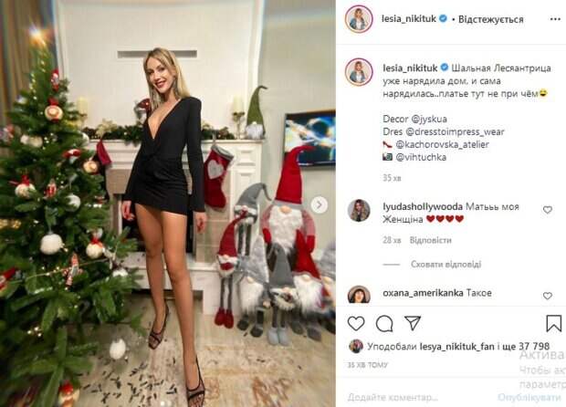 Популярная украинская ведущая Леся Никитюк решила подразнить фанатов, показав главную гордость в экстра-мини Как рассказывает Politeka, фотографией знаменитость поделилась у себя на странице в Instagram. «Шальная Лесяантрица уже нарядила дом, и сама нарядилась…платье тут не при чем», - говорится в сообщении.