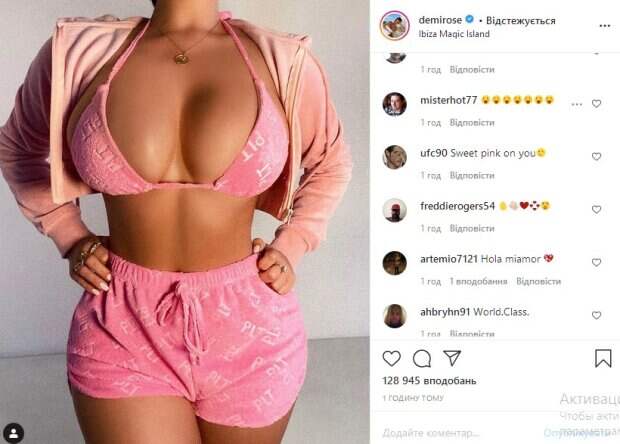 «Наконец-то что-то интересное», «ух, какая жаркая красотка», «ох, какое тело безупречное», «ох, это слишком горячо», «волшебная», «розовый тебе явно идет, красотка», «это очень круто!», - пишут ее поклонники. До этого мы рассказывали, что модель купальников и нижнего белья Деми Роуз, которую называют "британской Кардашьян", показала новый образ в милом купальнике с сердечками. Популярная красотка любит проводить время на пляже и показывать свое тело в довольно маленьких и едва прикрывающих ее тело купальниках. Раньше Деми стеснялась своей фигуры, а теперь наоборот – демонстрирует ее открыто и без какого-либо стеснения. Так как модель рекламирует белье и бикини, она публикует довольно много кадров в одном стиле, но это не мешает поклонникам восхищаться и нахваливать Роуз, а также ее фигуру. Обладая шестым размером бюста, Деми в основном показывает его на селфи. Напомним, мокрая Деми Роуз показала идеальный "орешек" в белоснежном бикини. Как сообщала Politeka, Деми Роуз не смогла удержать "черешенки" в красном бикини с вырезом. Также Politeka писала, что Деми Роуз покорила размерами своих прелестей, забыв о лифчике