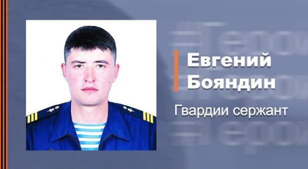 Мужество, решительность и высочайшее тактическое мастерство гвардии сержанта Евгения Бояндина и его боевых товарищей позволили уничтожить в бою диверсионную группу украинских националистов в ходе выполнения спецоперации по освобождению Донбасса и денацификации Украины. Об этом 26 марта сообщила пресс-служба Минобороны РФ.