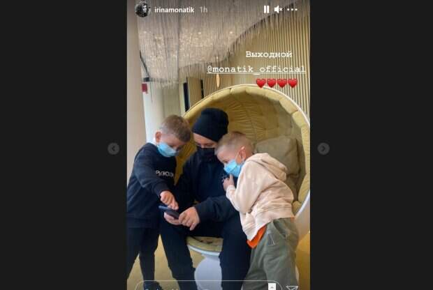 На фотографии, размещенной в сториз, Дмитрий Монатик запечатлен в черном спортивном костюме с шапочкой и маской, он присел в глубокое кресло со смартфоном в руках, а любопытные сыновья Даниил и Платон прижались к отцу по бокам, внимательно рассматривая экран. Стоит отметить, что младший практически полностью скопировал стиль певца, а старший надел более яркую одежду. Ирина Монатик также выложила короткое видео, на котором Дмитрий (уже в фиолетовой зимней куртке) вместе с Даней и Платоном увлеклись большим сенсорным фортепьяно, установленным в одном из залов торгового центра. Папа и сыновья принялись ходить по клавишам, которые подсвечивались у них под ногами. "Выходной. Музыканты мои", - подписала кадры счастливая мама. Стоит отметить, что Дмитрий с женой Ириной и малышами живет в частном доме, поэтому детям есть, где разгуляться, даже во время карантина. Недавно тренер "Голос країни" опубликовал в соцсети забавное видео: сначала он сидит за столом и оглядывается по сторонам, а в следующий момент роняет голову на стол и буквально превращается в снег, от артиста остаются лишь красная шапка и кучки снега. Напомним, Монатик в трусах насмешил Дорофееву и Брежневу, видео яркой выходки. Как сообщала Politeka, загорелая жена Монатика в купальнике похвасталась своим дзеном среди пальм. Также Politeka писала, что неприятности настигли семью Монатика на отдыхе, жена певца взбудоражила откровением.