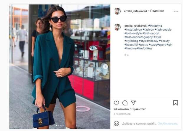 Известная модель Эмили Ратаковски показала эффектный образ для городской прогулки На фото Ратаковски показалась в пиджаке и с маленькой сумочкой. Модель дополнила образ стильными очками и сапогами. Красотка не надела штаны, а пиджак решила оставить расстегнутым, намекая, что белья под ним нет. В таком виде Эмили гуляла по городу, хвастаясь не только роскошными ножками, но и более аппетитными местами.