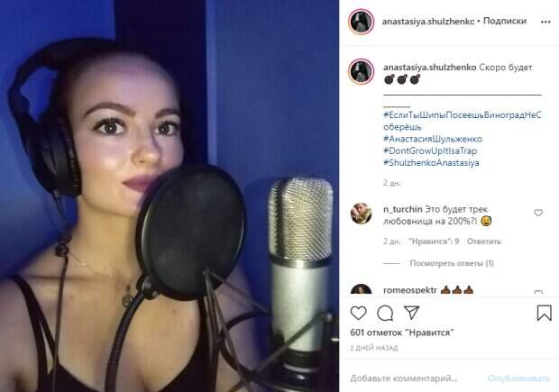 28-летняя актриса Анастасия Шульженко, которая заявила о романе с женатым на Наташе Королевой Тарзаном, удивила преображением Как передает Politeka.net, девушка опубликовала свежее фото в своем микроблоге в Инстаграм, на котором показала себя с ярким макияжем за любопытным занятием. Так, Анастасия позировала в студии перед микрофоном.