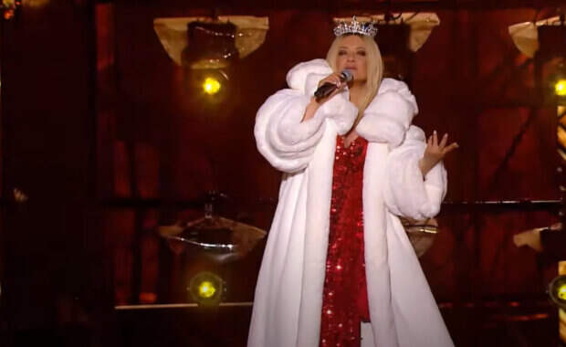 Украинская певица Наталья Могилевская подорвала сцену новым хитом и зажигательными танцами на столе Как передает Politeka.net, артистка приняла участие в новогоднем огоньке, где презентовала свой новый хит «Натусик», который она исполняет с молодыми исполнителями. Красотка вышла на сцену в короне и белой меховой накидке королевы.
