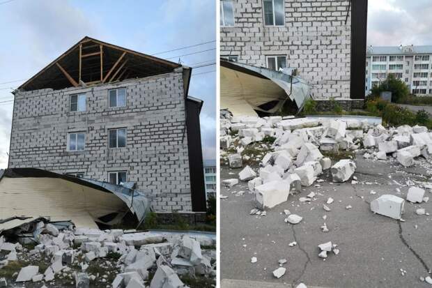 Штормовой ветер сорвал обшивку из сайдинга многоквартирного дома в Барабинске Новосибирской области.