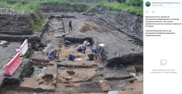 Псковские археологи открыли ранее неизвестный участок псковского некрополя — комплекс курганного могильника Х-XI веков, сообщает пресс-служба Археологического общества Псковской области 12 декабря на своей странице в социальной сети ВКонтакте. Ученые рассказали об археологических раскопках на территории бывшей Псковской ТЭЦ на улице Советской.