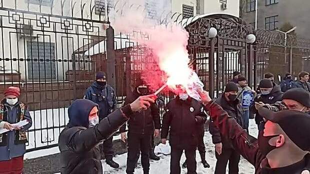 В Киеве под посольством РФ националисты избили участников акции в поддержку российского блогера-либерала Алексея Навального. Под зданием посольства собралось около полусотни человек, передаёт корреспондент «ПолитНавигатора».