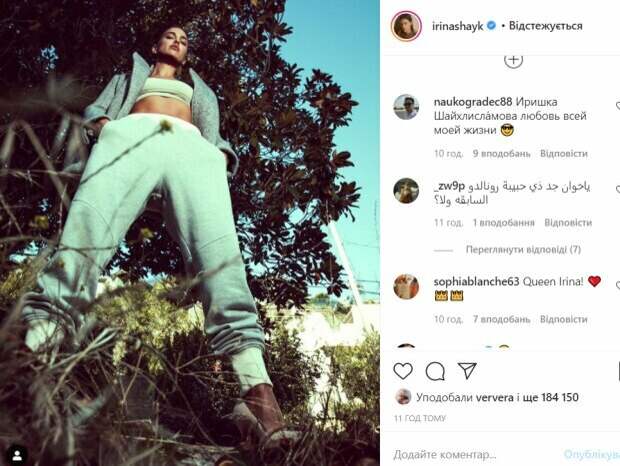 Шейк позировала в черном мини-платье, обтянувшем ее пышные груди и красивые бедра. Его длина была настолько "дерзкой", что едва прикрывала самое интимное. Зато можно было вдоволь налюбоваться стройными и ровными ножками знаменитости. К слову под такое платье модель надела грубые черные ботинки и носки. Глубокие вырезы по бокам наряда засветили обнаженную пышную грудь Ирины. Звезда решила "пошалить" и не надела белья, что придало откровенности и так смелому фото со звездой. Другие модели стояли по бокам. Рыжая красотка позировала в легком платье без белья, а жгучая брюнетка - в кружевном лифчике и тугих лосинах. Всего за 10 минут пост собрал более 40 тысяч лайков и много комментариев. Пользователи сети высказывали свое восхищение. Напомним, Ирина Шейк была одета в спортивный костюм и туфли на каблуке. Красотка сфотографировала себя снизу, чтобы показать все свои достоинства. Изюминкой образа стал короткий топ, который открыл взгляду плоский животик звезды. Ранее мы писали, что Ирина Шейк позировала в черной рубашке, которую не только расстегнула, но и приспустила на одном плече. Красотка показывала свое новое смелое белье: черно-белое и в кружевах. Шейк соблазнительно выгнулась, демонстрируя идеальную талию. Напомним, роскошная Ирина Шейк расставила ножки в черных ботфортах А еще Politeka сообщала, что растрепанная Ирина Шейк в одном лифчике впечатлила роскошным видом Также Politeka писала, что соблазнительная Ирина Шейк предстала в образе роковой блондинки и не прогадала