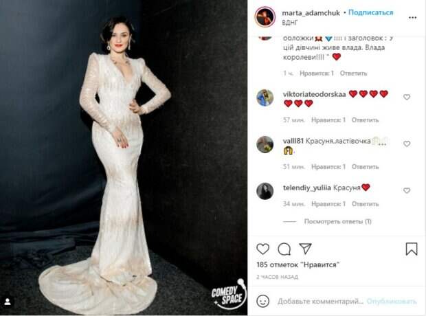 Ради ярких появлений звезда также не раз меняла прическу и даже успела побывать в роли эффектной блондинки. В этот раз Марта покорила поклонников одним кадром, на котором позировала в белом наряде, больше похожем на свадебное платье, чем на классический вечерний или праздничный образ. Нежная ткань, расшитая блестками и кружевами подчеркнула образ Адамчук и ее аккуратный стиль. «Прилетела ласточка с концерта @zhenskiykvartal_official, когда мы могли видеть вас в зале :( Но я верю, что все очень скоро пройдет. И 15 мая мы с вами снова встретимся в концерт холле ВДНХ ❤️», - написала артистка. Пользователи сразу ответили: «Брависсимо-О-О-О; Absolutely stunning beauty; Леди с обложки