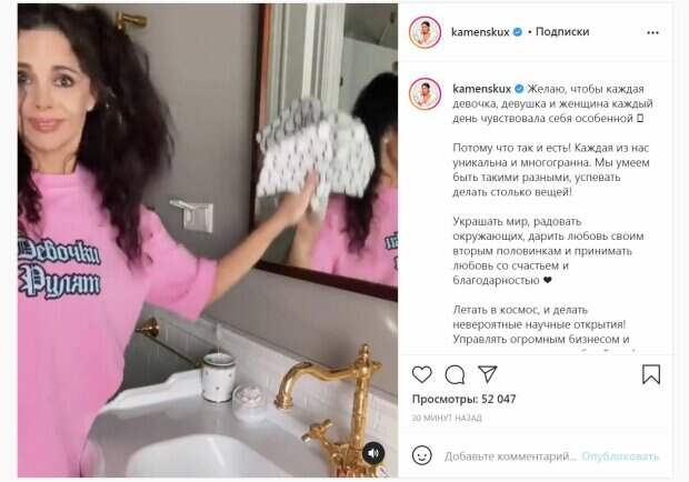 Настя впечатлила красотой, занимаясь домашними делами. Артистка гладила, застелила постель, а также позировала в гардеробе, подбирая наряды и аксессуары. На фоне играла песня "Девочки рулят". Всем этим звезда занималась в собственном доме, засветив весь интерьер. Известно, что Каменских вместе с мужем Потапом живут в двухэтажном особняке в одном из элитных поселков под Киевом. Соседями супругов стали другие звездные муж и жена - телеведущие Юрий Горбунов и Катя Осадчая. По совместительству обе пары также кумовья - Потап крестил сына Горбунова, Ивана. Возвращаясь к посту Каменских - она поздравила женщин с 8 Марта, пожелав им всего хорошего. "Мы всегда можем быть самой собой, выбирать любую профессию или призвание, испытывать любые эмоции. Мы разные! И в этом и есть наша суперсила!", - отметила звезда. За полчаса кадры собрали более 50 тысяч просмотров и много комментариев: "С праздником", "Правильные слова ❤️", "Девочки рулят, согласна
